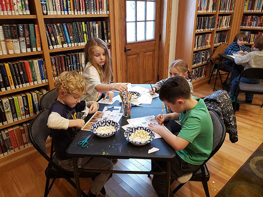 Harry Hoag first graders and their teachers toured the Fort Plain Free Library Monday morning, Dec. 12, before participating in a library scavenger hunt, snacking on popcorn and creating spiral snow people and paper tree ornaments. The collaborative program was the first in a series that will take place over the next few months.